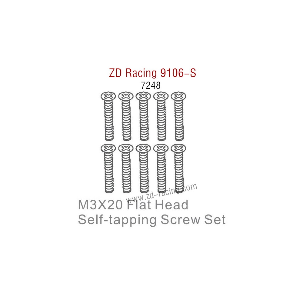 ZD Racing 9106S Parts M3X20 Flat Head Self-tapping Screw set 7248